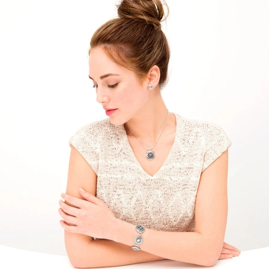 Pierced, studded and domed, this medallion is inspired by the medieval Cathedral of Strasbourg in northern France. Eye-catchingly gorgeous, this petite necklace flatters any neckline.