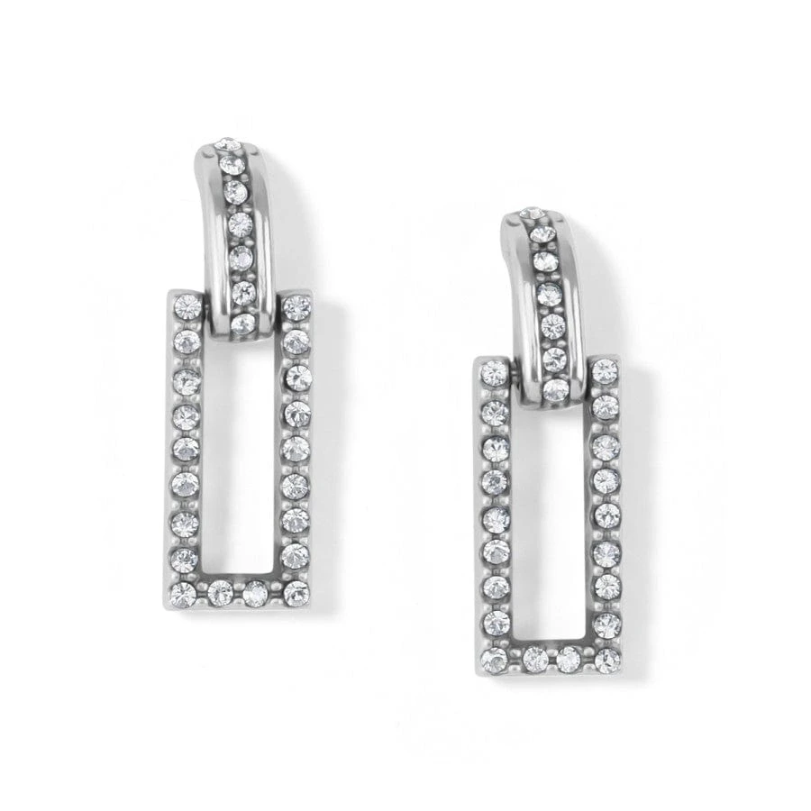 With a view like one sees while peering through a kaleidoscope, these earrings with a sleek rectangular shape and handset fine crystals take a modern turn.