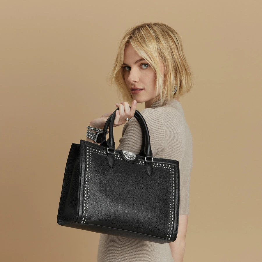 Want a tote for work with a bit of a punch? Then this Jaxon tote is for you. Its roomy interior fits an iPad and other work essentials. A back slit pocket minds your phone and keys. Use it as a hand-held, or cross body when you want to go hands free.