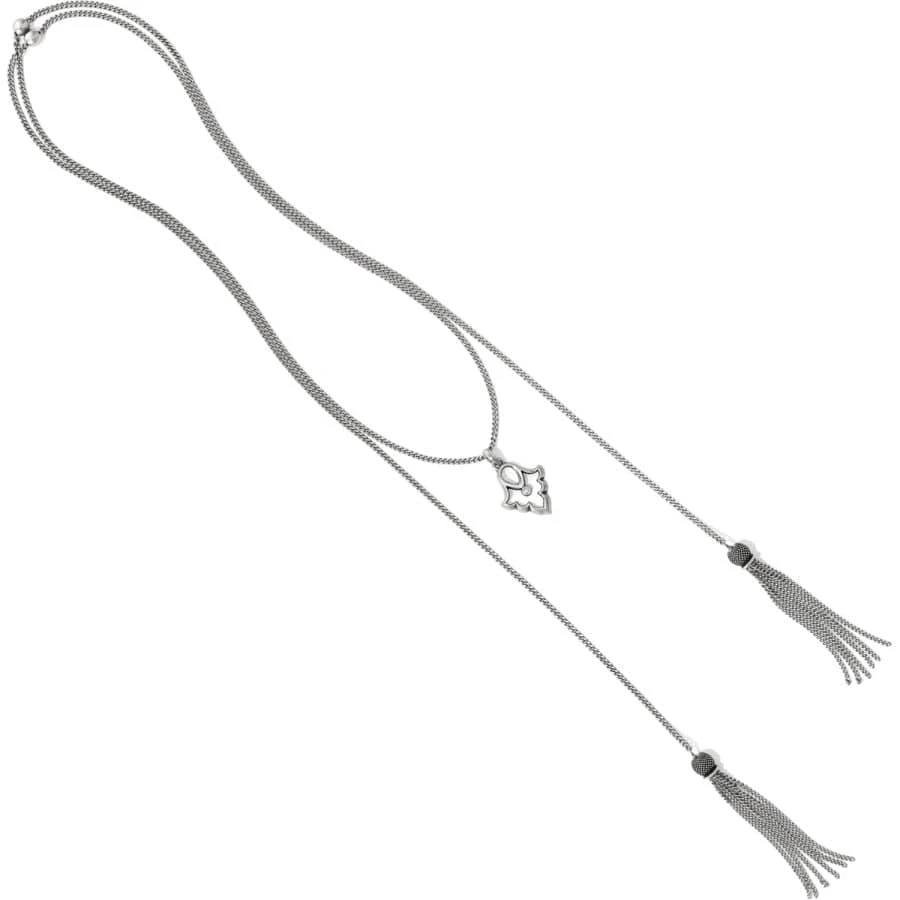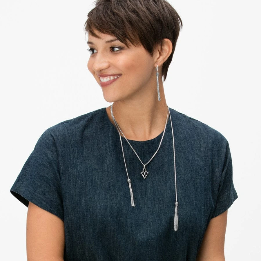 Named for Princess Salma of Morocco, this collection is a modern interpretation of centuries-old details found in traditional Moroccan art. This pendant’s shape echoes the Hamsa, a symbol of protection and good luck. Its lariat chain is finished with on-trend tassels.