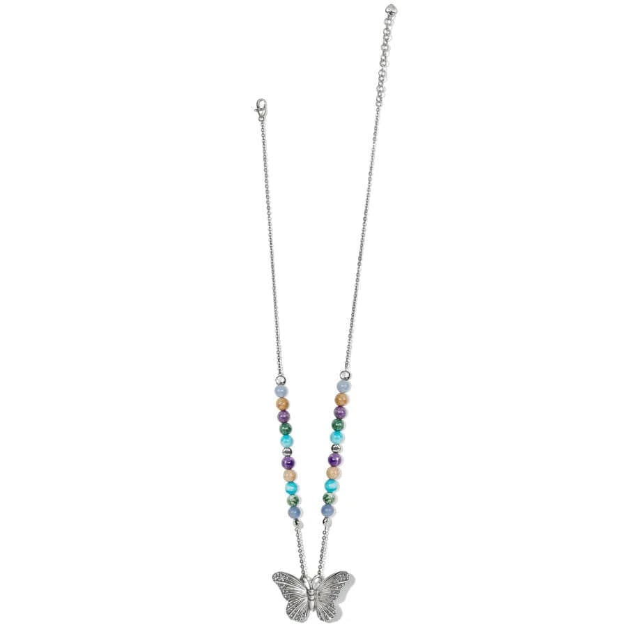 Building upon the exquisitely sculpted Solstice butterfly of seasons past…we have added a splash of color by introducing semiprecious turquoise jasper, picture jasper, tree agate, Brazil blue quartz and amethyst stones to the mix. Because we have used natural materials, each stone is truly one of a kind and may have variations in color.