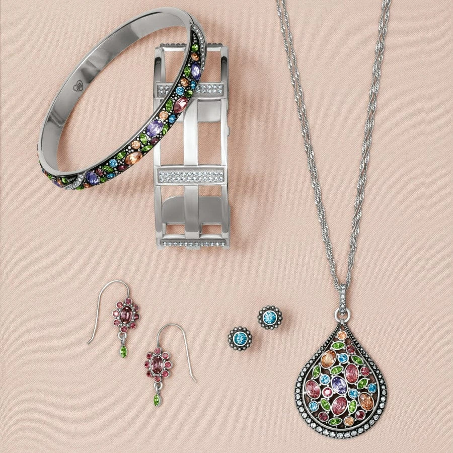 This bangle is simply stunning! A melange of colorful hand-set fine quality crystals offers the ultimate wardrobe versatility, and the bracelet is easily stacked with others.